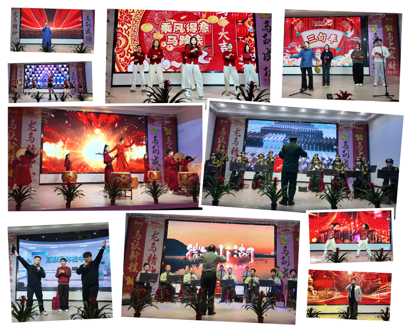 总结表彰大会结束后,文艺晚会精彩上演。活力四射的开场舞《中国龙》瞬间点燃全场激情;轻盈优美的舞蹈《一路花开》寓意公司发展步步生花;刚柔并济的武术《金刚圈》展现了东达人坚韧不拔的精神风貌;幽默而深情的小品《公司岁月》以轻松方式回顾了员工与企业共同成长的温暖点滴;现代舞《WaDaDa》则以动感节奏展现出青年员工的朝气与创造力。整场节目均由员工自编自演,台上台下互动频频,掌声、笑声此起彼伏,将晚会推向一个又一个高潮。